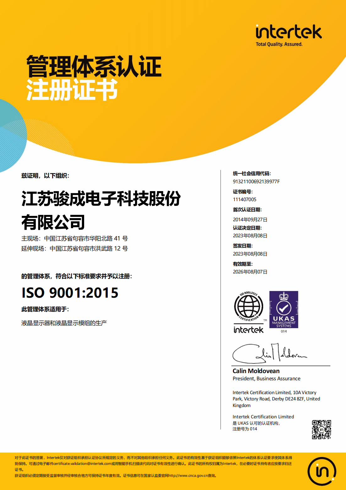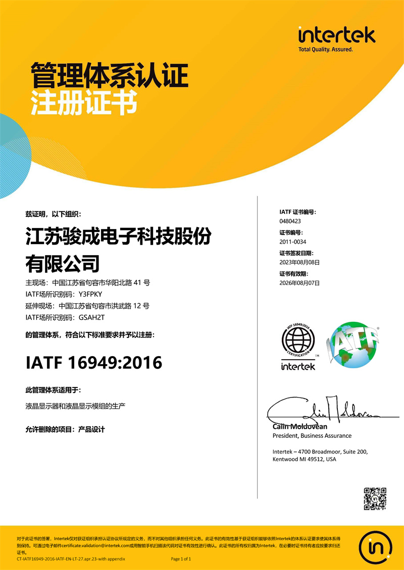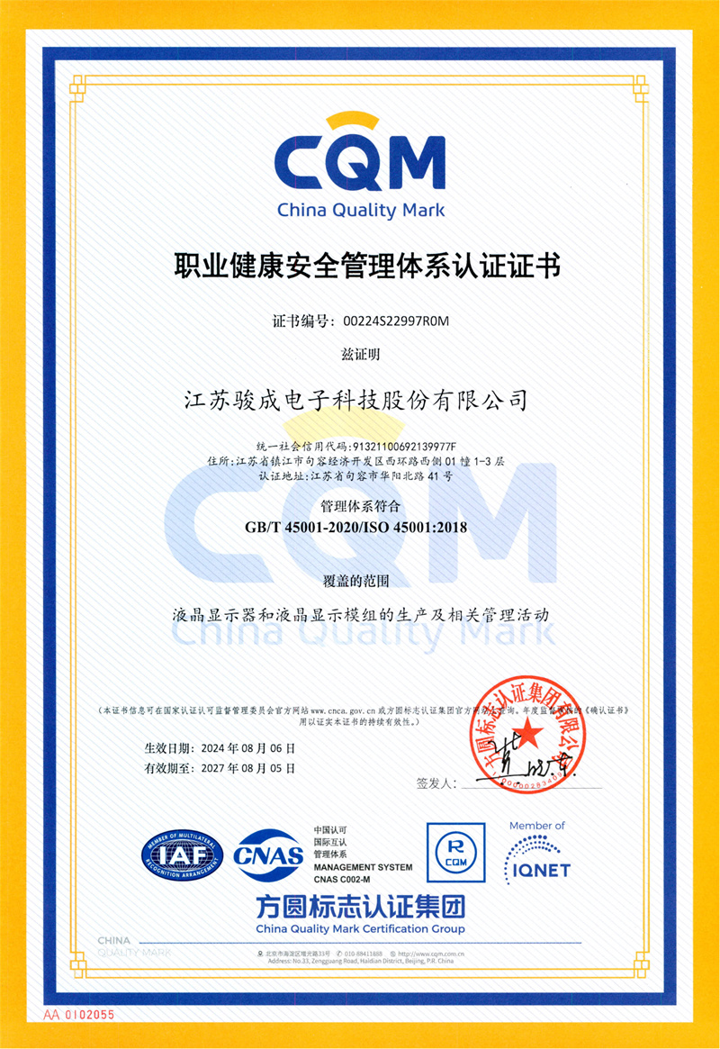 江苏骏成电子科技股份有限公司位于中国江苏省毗邻南京的句容市经济开发 区内,成立于2009年,设备完全来自日本HITACHI公司的一 家LCD&LCM专业生产企业,专门生产销售STN型液晶显示器和显示模组。公司占地25000平方米。拥有净化厂房6000余平方米,年生产各类显示器60000多平方米,显示模组2000万粒的能力,产品广泛应用于移动电话、工业设备,家用电器,终端设备等大容量信息显示终端。江苏骏成电子科技股份有限公...