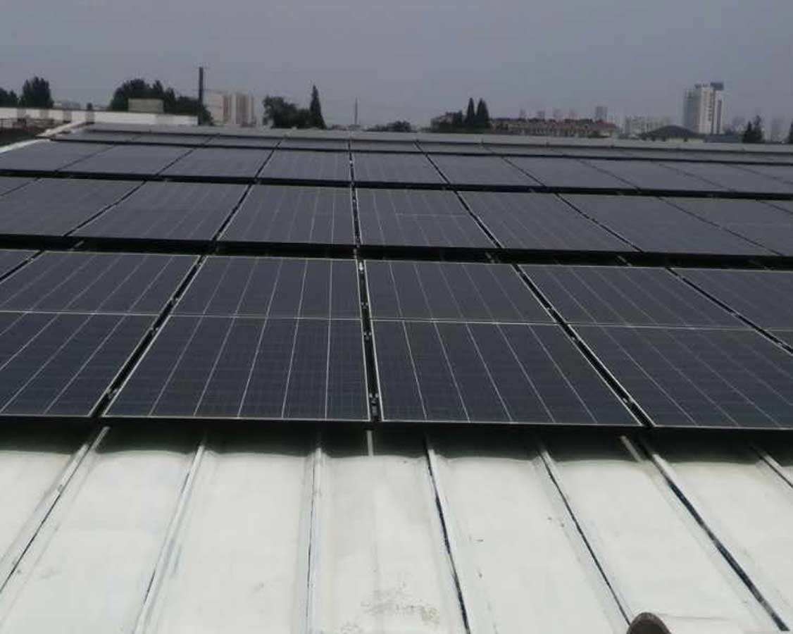 .本工程项目系统共铺设太阳能组件1870块,在江苏骏成电子有限公司厂房屋面不知太阳能电池板,光伏组件随屋面平铺安装,经计算采用22一串的电气连接方式,组串在屋面就近接入相应逆变器,再接入相应交流汇流箱,本工程共使用8台60kWp组串逆变器。